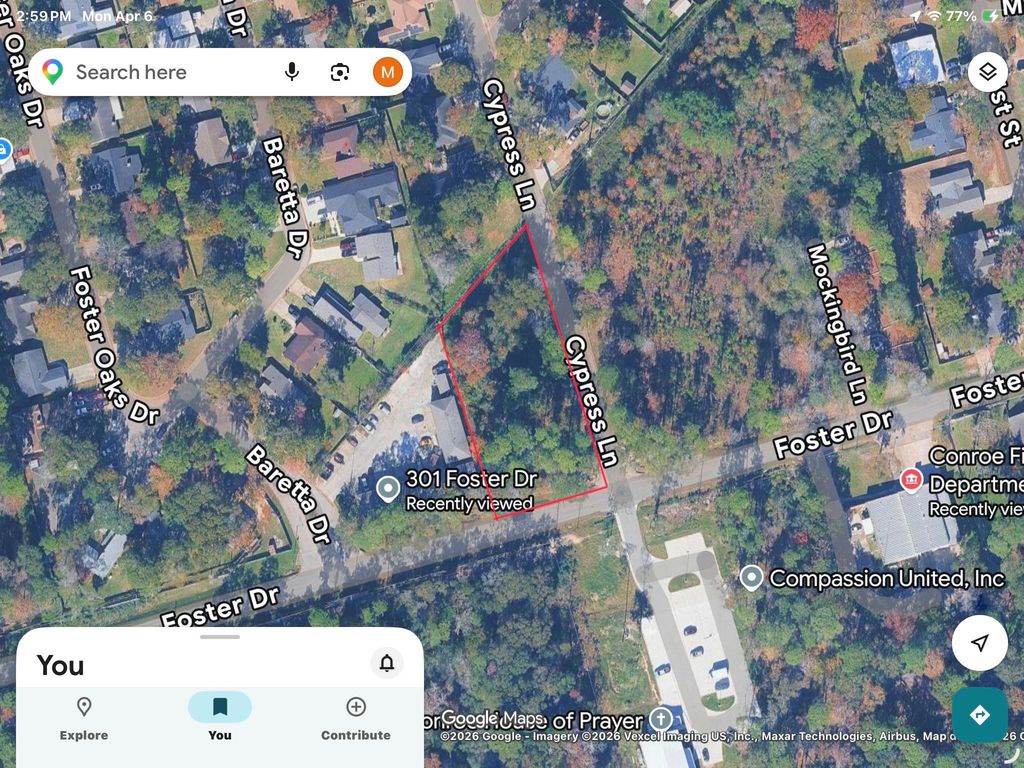 This corner lot of 37,897 square feet on the south side of Conroe with a Low Tax Rate of 1.9071. New Construction of a Church is proceeding across the street on Cypress Lane @ Foster Dr. Cypress Lane also is one of two entrances to the neighborhood to the North.