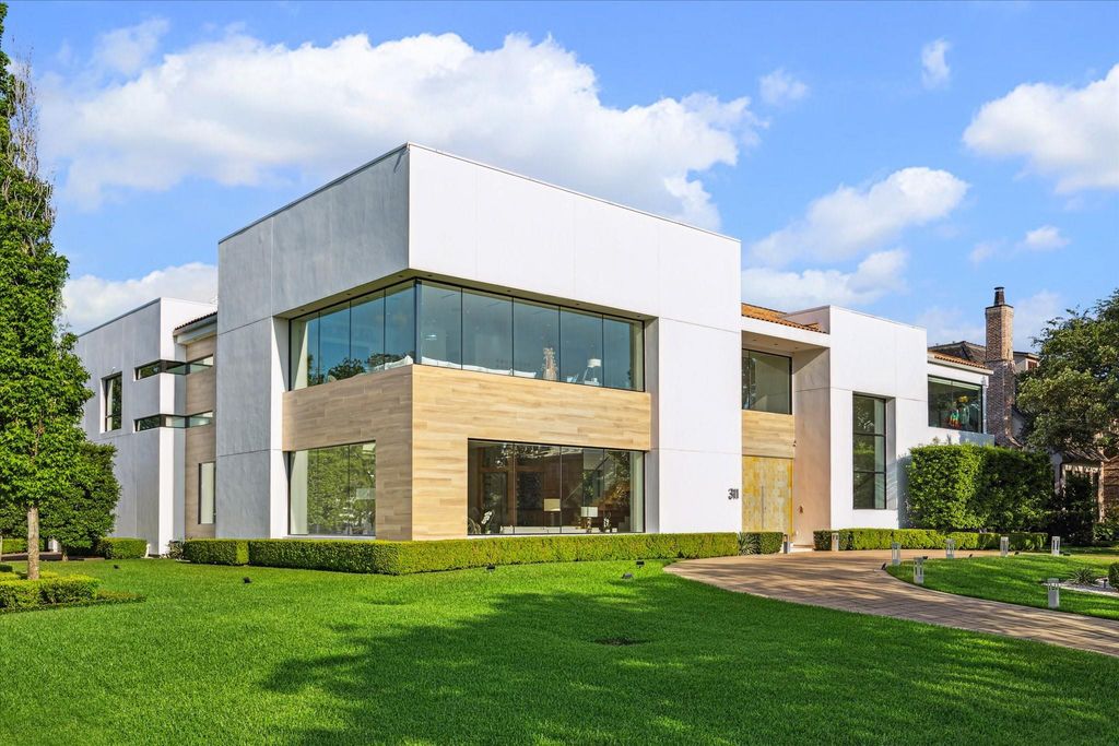 A modern masterpiece combining captivating contemporary architectural elements with resort-style amenities and a treasured Tanglewood location with close proximity to Houston Country Club. The flexible floor plan offers endless entertaining capabilities and impeccable scale enhanced by stylish surfaces, soothing color palettes, substantial ceiling heights, and ample natural light. Grand Entrance Hall with adjacent wet bar/lounge and open-concept living/dining space with wine vault. Gourmet Kitchen with Eggersmann cabinetry and Miele appliances. Owner's Retreat down with lavish bath and bespoke dressing room. Elevator-installed to upper-level Lounge + 5 Bedrooms. A separate staircase ascends to a recreation room well-suited for a home office or fitness center. A sizable Loggia overlooks the outdoor oasis with seamless swimming pool/spa, summer kitchen, and manicured lawn. A circular driveway offers additional off-street parking and a gated motor court leads to the 3-car attached garage.