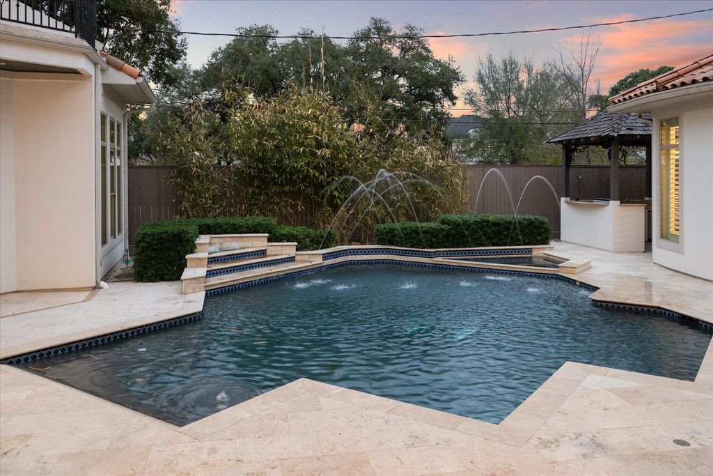Welcome to this dazzling Mediterranean-style masterpiece located in the highly sought-after Tanglewood area of Houston. The home's stunning architecture features a grand foyer with soaring ceilings, greeted by a magnificent chandelier that sets the tone for this elegant residence. Designed for those who appreciate beauty and functionality, the chef's kitchen is equipped with top-of-the-line stainless steel appliances, custom cabinetry, and ample counter space, making it perfect for both intimate dinners and entertaining guests. Every corner of this home exudes sophistication, blending old-world charm with modern luxury. Enjoy the tranquility and prestige of living in one of Houston’s most established and desirable neighborhoods. Whether hosting in the elegant living spaces or relaxing in the private, serene atmosphere of the pool and outdoor kitchen in the backyard, this home is the perfect retreat in for city living.