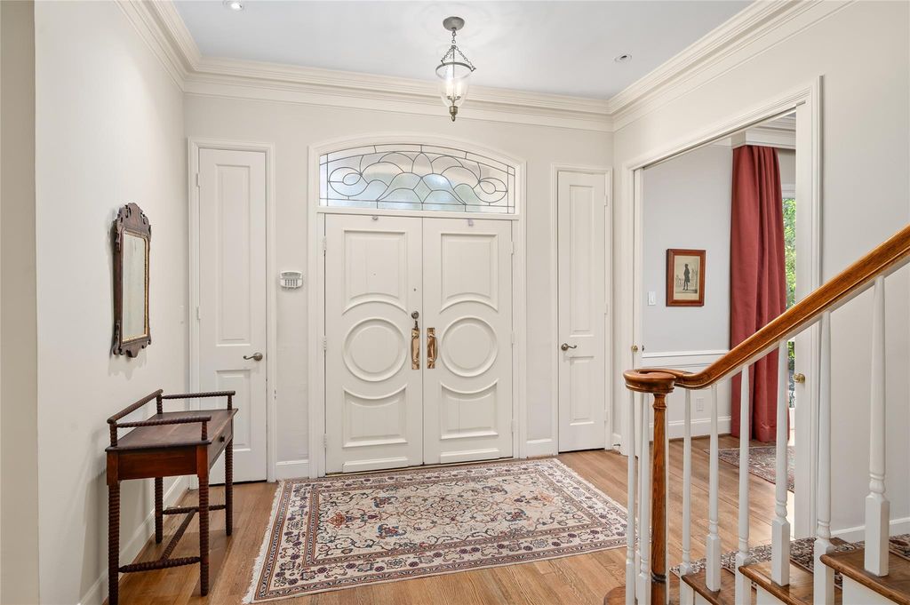 Designed by noted Houston architect Lucian Hood, this stately Tanglewood traditional sits on a quiet street and adjoins the Houston Country Club. Updated several times. Most recent updates in 2009/2010, the first floor features hardwood flooring, high ceilings, and a grand circular staircase. With 5 to 6 bedrooms including a possible second master. Included elevator, fireplace, and wet bar. This property offers luxury living. A flexible upstairs area can serve as a game room, bedroom, or study with attached home office space. Additionally, there is a one bedroom with a full bathroom quarters on the first floor.