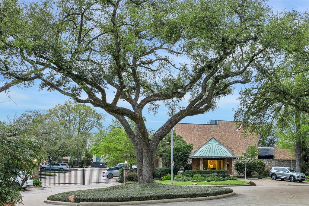 Designed for comfort, elegance and safety, here is a rare opportunity to own a primarily one-story patio home in a 24-hour guard-gated community. Thoughtfully reimagined with luxurious finishes, this light and bright home showcases beautiful steel windows, doors & gates, blending sophistication with timeless design. Inspired by classic New Orleans charm, the home features a private front courtyard, serene atrium, large patio and up to 6 parking spaces. Inside, oversized rooms boast 10' ceilings and a dramatic 14-ft ceiling in the family room with striking stone fireplace. The study is ideal for a home office or Mahjong room. The stylish bar impresses with high gloss cabinetry, brass glass rack and wine cooler. The primary suite highlights a large, curved window and spa-inspired bath featuring dual vanities and dual generous walk-in closets with custom lighting. Two powder rooms, a large upstairs bonus room with 2 walk-in closets, 5 skylights and a tranquil fountain add to it all.