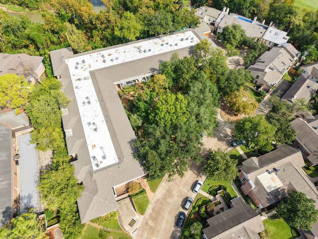 PRICE REDUCTION!!! HIDDEN GEM...Located in the quiet & peaceful, beautifully treed private community of Woodway Glen. This upstairs end unit has no common walls, only one unit below. Prime location near Tanglewood/Hunters Creek areas, Houston Country Club, Galleria & many restaurants. Very secure w/controlled access at the main entrance & gated underground parking w/individual storage units & an elevator providing easy access into the building exterior. A large pool overlooks the beautiful bayou area. There is a lovely main floor lobby w/secure interior mailboxes. The maintenance fee includes ALL utilities (electricity, gas, water & sewer), trash disposal (picked up at front door 3 times weekly), basic cable, insurance for the structure, exterior maintenance, security cameras & gated entrance to garage. This lovingly maintained 2 bedroom, 2 bath w/ spacious dining & living rooms & large primary bedroom w/ensuite bath is ready for you to come & add your special touches. Selling "AS IS".