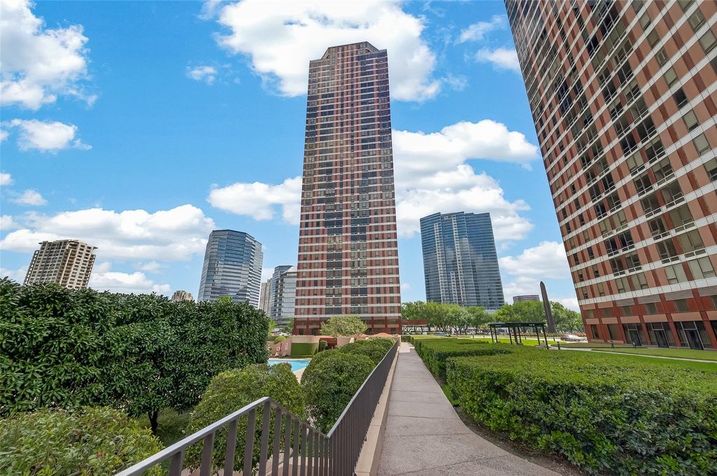 Experience breathtaking sunset & city views from this elegant west facing 19th-floor residence at Four Leaf Towers. Located in the Galleria this home offers the pinnacle of upscale Houston living w/premier shopping, dining & entertainment just steps away. Walls of windows fill the living/dining areas w/natural light framing the sunset views & creating a luminous elegant atmosphere. The living room features a wet bar perfect for taking in the skyline & additional dining area that seamlessly complements the open layout. The thoughtfully designed kitchen features white cabinetry, granite countertops, SS appliances & generous counter/cabinet space. The spacious primary suite serves as a private retreat w/skyline views. The primary bath delivers a spa like experience w/an oversized walk-in shower, double sinks, vanity & a striking floor to ceiling marble finishes. Building amenities include a pool, spa, sauna, tennis courts, fitness center, community lounge & 24/7 concierge services.
