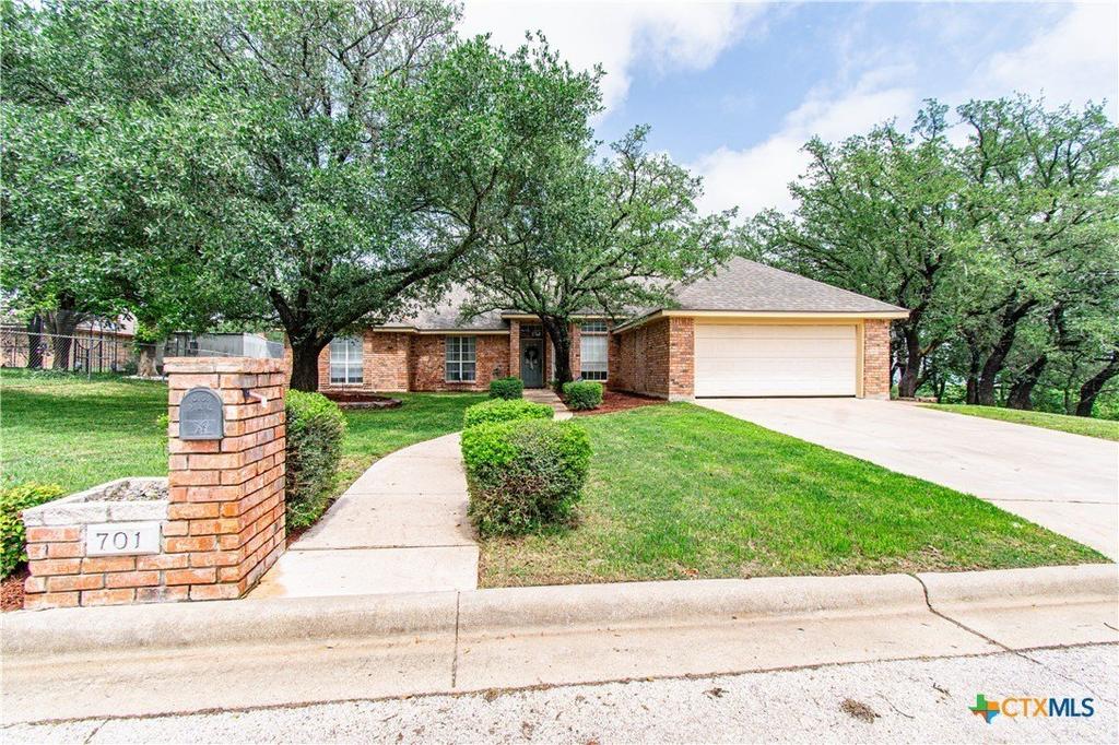 Nestled on a peaceful cul-de-sac in Copperas Cove, this beautiful 4-bedroom home offers 2,100 square feet of comfortable living space and scenic views. The spacious living room is anchored by a cozy wood-burning fireplace, creating a warm and inviting atmosphere. The kitchen is thoughtfully designed with an open layout connecting both dining areas and the living room, and features a large center island, gas cooktop, double oven, granite countertops, and newly installed custom cabinetry. The primary bedroom easily accommodates a king-size bed and includes a recently updated en-suite bathroom with a large walk-in shower, soaking tub, dual walk-in closets, and private access to the back patio. The three additional bedrooms are generously sized and offer ample closet space. Step outside to enjoy the tranquility of nature, with sweeping views of the valley framed by mature oak trees. The covered patio provides plenty of room for a grill and smoker, along with ample space for relaxing or entertaining family and friends.