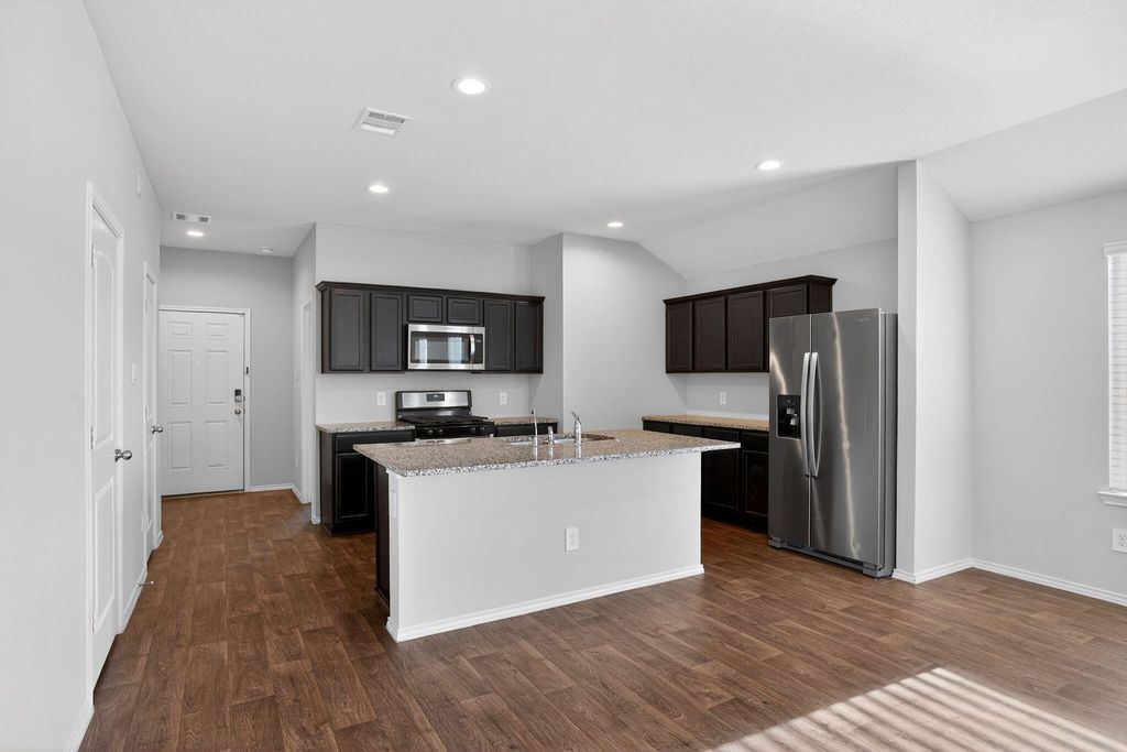 Welcome to this beautiful 4-bedroom, 2-bath home located in the desirable Mill Creek Estates community in Magnolia. This well-maintained home features an open-concept layout with the kitchen and living area flowing seamlessly together, perfect for both everyday living and entertaining. Enjoy hardwood floors throughout the main living areas, high ceilings that create a spacious feel, and plenty of natural light. The kitchen opens directly into the living space, making it ideal for hosting and staying connected. The primary suite offers a large walk-in closet and a spacious bathroom complete with a walk-in shower. Refrigerator, washer, and dryer are all included for added convenience. Situated on a quiet street in Mill Creek Estates, residents enjoy access to great community amenities including a pool, splash pad, and park areas.