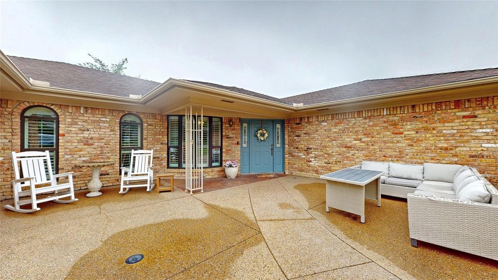 Gorgeous single-story in Camelot Acres - a quiet, coveted community nestled in the heart of Grand Prairie! Sitting on a third-acre interior lot, this sprawling plan offers 4 bedrooms, 3 full baths, three spacious living areas and two dining spaces making entertaining a breeze, and a 2-car garage! The main living area offers vaulted and beamed ceilings plus a skylight, while a beautiful brick fireplace with custom built-in shelving is the focal point of the room. An adjacent kitchen offers abundant cabinetry and counter space, boasting granite countertops, a tumbled stone backsplash, and all new oven and microwave added in April of 2026. The primary retreat offers dual closets, a makeup vanity, and ensuite bath completely remodeled in March of 2026. Two bedrooms down the hall share a full hall bath. A fourth bedroom secluded at the opposite side of the home with an ensuite bath makes the perfect guest or in-law suite. Step through the expansive sun room at the rear of the home into the private backyard, complete with mature trees, an open patio area, and convenient storage shed! Recent major upgrades include all-new PVC piping in 2025, new interior paint over the last year, full HVAC replacement in 2023, new water heater in 2015, and Class 4 impact-resistant roof replaced in 2012!