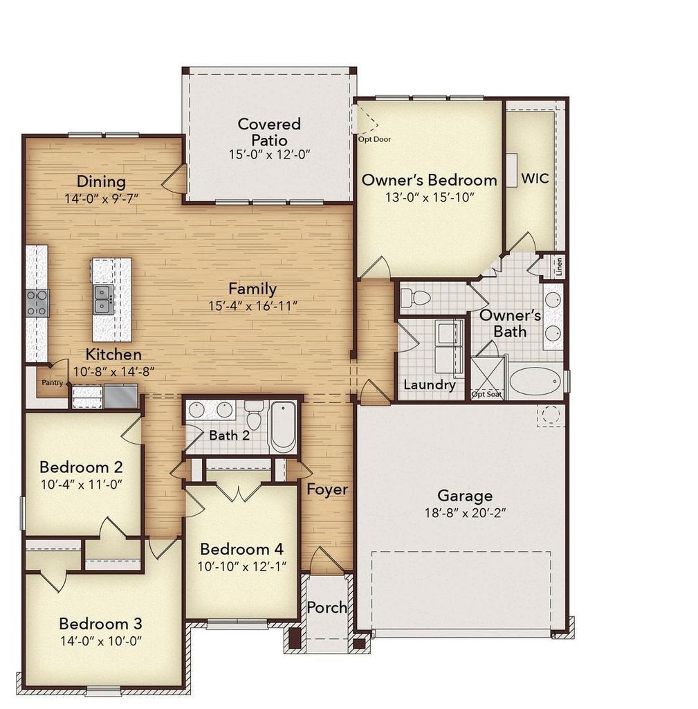 MLS# 21084539 - Built by Kindred Homes - Ready Now! ~ Welcome home to the Magnolia, a one-story, three,four-bedroom plan with stunning curb appeal, highlighted by a stone elevation. Inside, enjoy a light and bright space with white kitchen cabinets, marble countertops, and cozy luxury vinyl plank flooring. The open floor plan seamlessly connects the kitchen, family, and dining rooms. The owner's suite includes a spacious bedroom, bath with dual vanities, a walk-in shower, and a luxurious closet. Situated on a quarter-acre corner lot, the home also features an extended covered patio.
