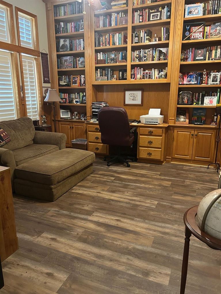 Beautiful Custom Home in a highly desirable neighborhood. This stunning custom-built home offers elegance, comfort and thoughtful design throughout. Featuring gorgeous hardwood flooring and extensive custom molding, every detail has been carefully crafted. The home includes 3 spacious bedrooms, plus a dedicated study office that can easily serve as a 4th bedroom. With 2.5 baths, the layout is both functional and inviting. The large kitchen is a standout offering abundant cabinet space, built-in appliances and a central island perfect for cooking and entertaining. The expansive primary suite provides a relaxing retreat complete with an attached bath featuring double vanities, a marble soaking tub and separate shower. Also enjoy both a formal dining room and formal living room ideal for hosting guests or special occasions. Additional features include: Cozy propane fireplace with built-in book shelves - Large covered patio for outdoor living - Beautiful landscaping - Storage building for extra space - 3 car garage. Located in a quiet neighborhood in one of the most sought-after areas of town, this home combines luxury and tranquility. Call for more information.