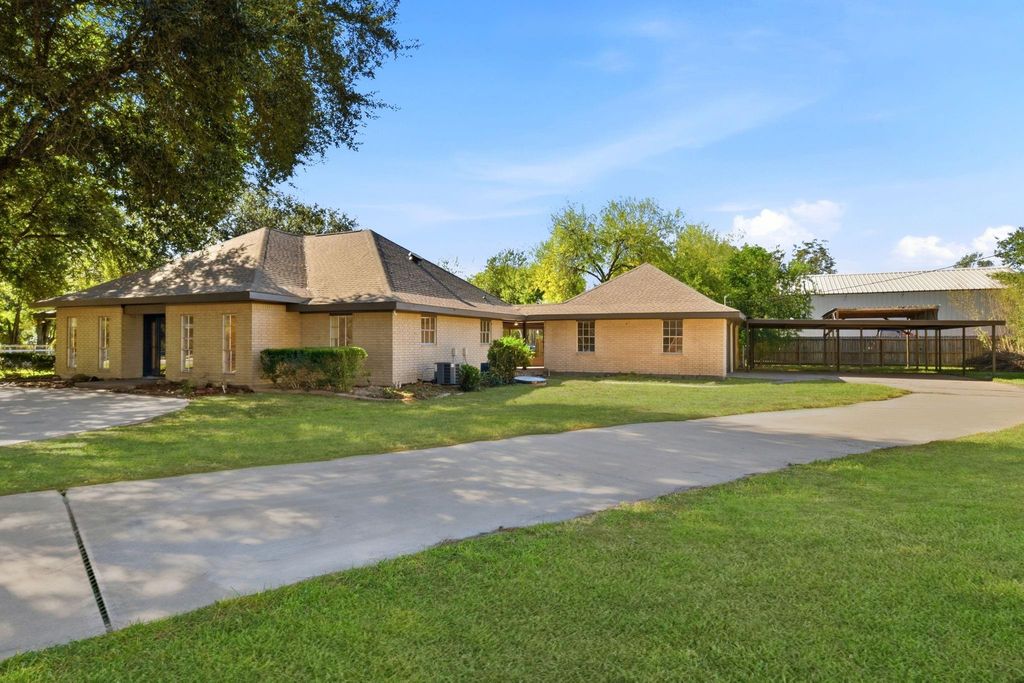 Country Living in the City! Enjoy the best of both worlds with this charming 1.5-story home nestled on over an acre! Beautifully updated throughout with a new roof, all new flooring, and fresh paint. The primary suite downstairs features a walk-in shower, dual closets, and stunning quartz countertops. The second bedroom downstairs is ideal for a nursery or guest space, while the third bedroom and full bath upstairs create a perfect private suite. The kitchen boasts quartz counters, recent appliances, and refrigerator included! Relax in the large sunroom (not included in HCAD square footage) or on the covered patio while watching deer roam your property. Plus, enjoy an oversized detached garage with workshop area and a huge 4-car carport. Low taxes and peaceful surroundings make this one a must-see!