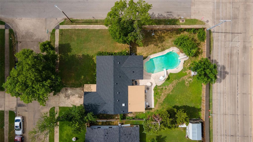 JUST LISTED! This beautifully renovated 3 bedroom, 2 full bath home is now For Sale. Major updates include roof in May 2025, HVAC, cast iron plumbing replaced with PVC, Low E windows, electrical panel and wiring updates, replaced pool pump, and much more! Kitchen has open floorplan with quartz countertops and soft-close shaker cabinetry along with stainless steel dishwasher and range. The 1 car garage was partially converted to additional living space to boost the interior to 1849 sqft of livable space while remainder can be used as storage. Larger corner lot enclosed with 8 foot privacy fence features a big pool in backyard perfect for entertaining friends and family during the Texas summer months! Located conveniently by highway 635 and 75 to make commutes to and from work easy.