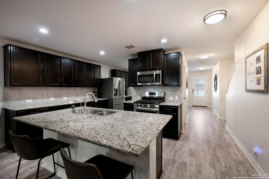 Welcome to your future home in the highly sought-after Valley Ranch community! This stunning 5-bedroom, 2.5-bathroom property offers a perfect blend of comfort and modern upgrades. The main floor boasts a spacious owner's suite with a luxurious bath, a large walk-in closet, and an open-concept living space that flows seamlessly from the gourmet kitchen to the dining and living areas. The kitchen is a chef's dream, featuring granite countertops, a large prep island with bar seating, a gas range, and a dedicated coffee bar. Upstairs, you'll find a huge bonus room, four additional bedrooms, and a full bath. The home is equipped with paid-off solar panels, an expanded driveway, and a screened-in porch that spans the full width of the home, with ceiling fans for year-round comfort. The garage also includes a new mini-split AC unit, making it a versatile space for any need. Valley Ranch offers an incredible lifestyle with amenities like a 24-hour fitness center, multiple pools, tennis and