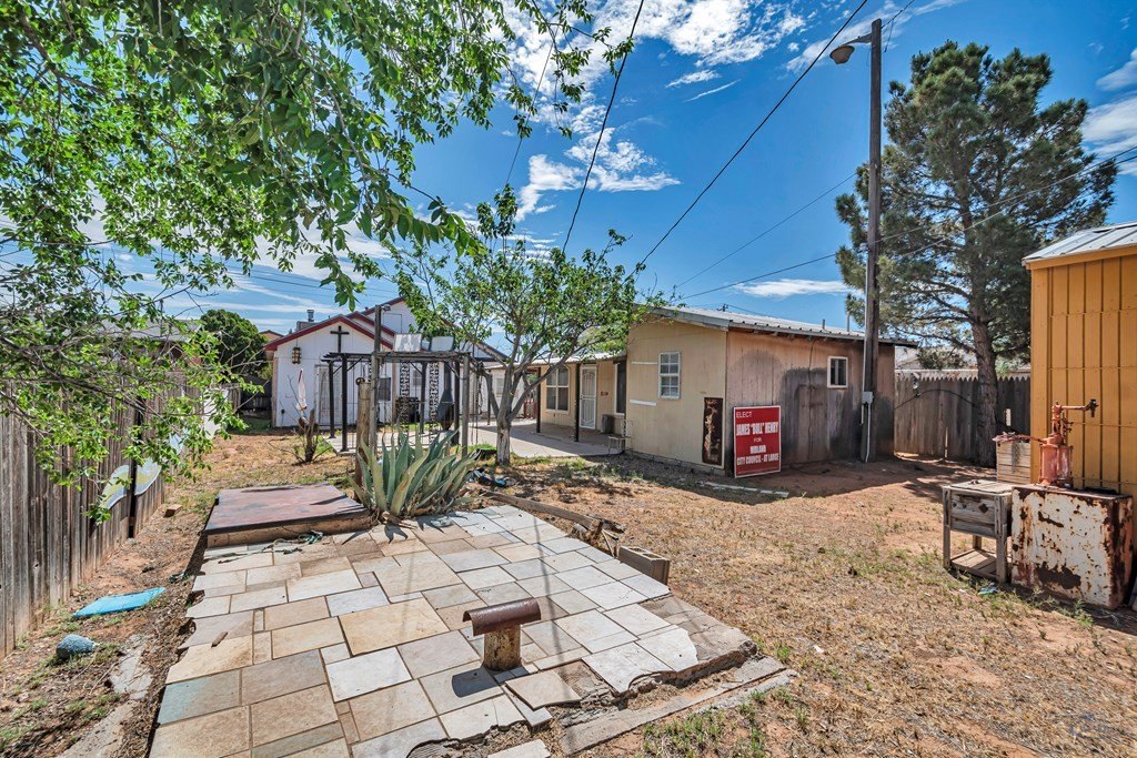 Two bedroom, 2 bath home with separate 1 bedroom, 1 bath studio space in back. Tile and wood flooring throughout, car port, and large back yard with covered patio.