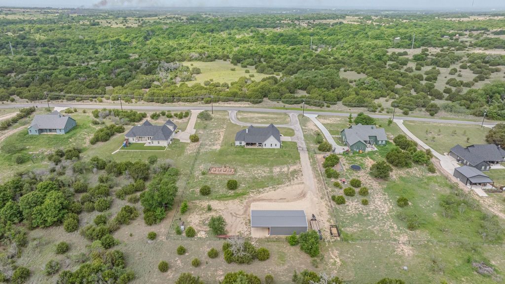 Welcome to this beautiful custom home situated on two acres in highly sought-after Peaster ISD, including a 30x40 shop with a 20x30 lean-to for additional coverage or carport. Built in 2022 by Circle M Homes, this thoughtfully designed property combines modern finishes with functional living spaces—perfect for both everyday life and entertaining. The home features four spacious bedrooms, with one easily adaptable as a private office, along with two full bathrooms and a convenient half bath. The open-concept living and dining area is anchored by a stunning floor-to-ceiling stone, wood-burning fireplace, creating a warm and inviting atmosphere. The kitchen is designed for both style and efficiency, offering quartz countertops, a large walk-in pantry, and seamless flow into the main living space. The primary suite is a true retreat, complete with a freestanding soaking tub, an oversized walk-in closet with built-in cabinetry, and direct access to the laundry room through the primary closet and mudroom for added convenience. Additional highlights include quartz countertops, luxury vinyl plank flooring for easy up-keep, built-in mudroom lockers, a stylish tile backsplash in the laundry room, water softener system, and an oversized 26’ x 25’ garage. Step outside to enjoy the expansive covered back patio—perfect for hosting gatherings or relaxing with family. The large fenced backyard provides plenty of space for outdoor living, pets, or play. For those needing extra workspace or storage, the property also includes a 30’ x 40’ shop with a 30’ x 20’ lean-to, offering endless possibilities. Located 7 min from Peaster schools, 11 minutes to Weatherford, 20 minutes to Costco, and 50 minutes to Fort Worth! This property truly has it all—space, style, and functionality in a peaceful and private setting.