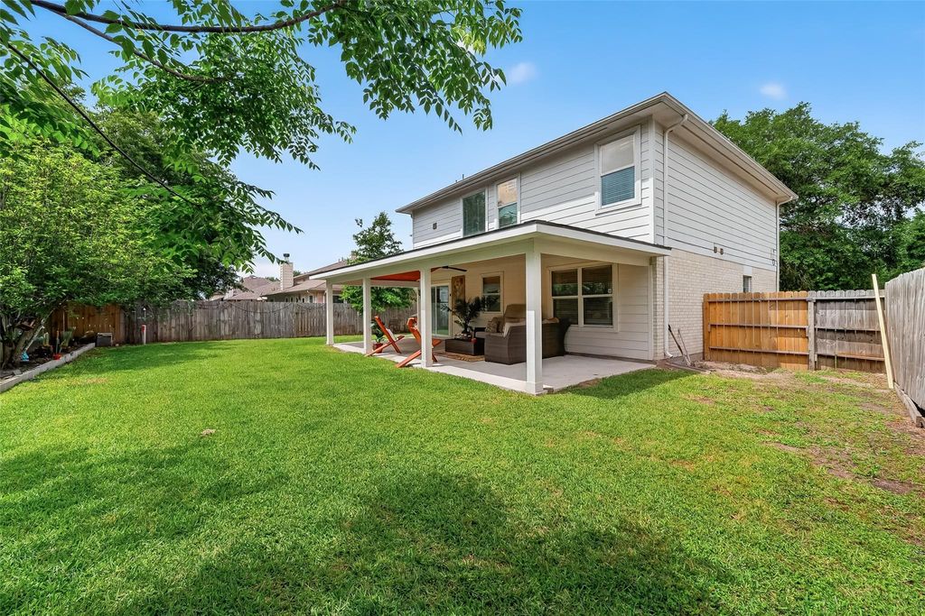 2-story home in Raintree Village with great space and a very well-maintained feel throughout. The highlight is the covered patio built in 2025—large, well done, and perfect for enjoying the beautifully kept backyard. Inside features wood floors throughout most of the home with the exception of the kitchen and dining area, adding warmth and style. The layout is spacious with great storage and built-ins throughout. Major updates include a roof (approx. 7 years old), exterior and interior paint (2025), serviced A/C and furnace (2025), gutters, and a recently replaced fence. The primary bathroom includes recently updated his and hers vanities and shower. Brand new sliding glass door leads to the backyard. Clean, well maintained, and a great deal.
