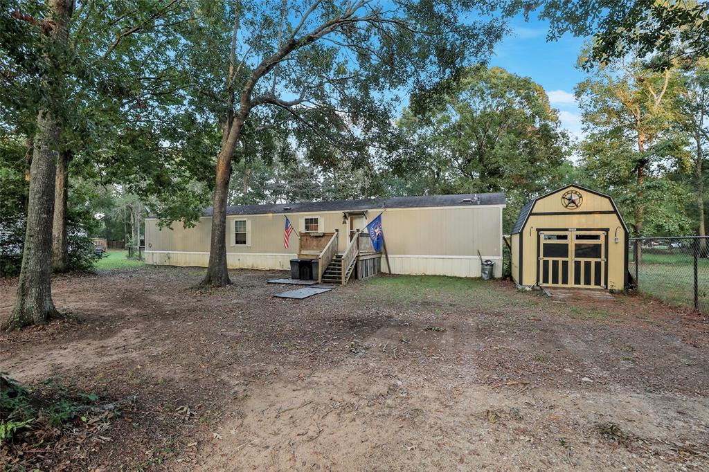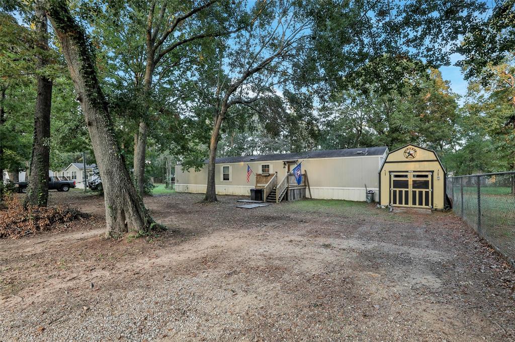 COUNTRY LIVING just minutes from Hwy 59 with an easy commute to Grand Parkway & IAH Airport. SITUATED on over a 1/2 ACRE lot with mature trees. This 3 bed, 2 bath home features front porch, family room opens to kitchen and breakfast area. Kitchen with rich cabinetry, plenty of cabinet and counter space, wrap around breakfast bar that opens to family room. Laminate wood flooring in main living and all bedrooms, & dining w/ built-in hutch. SPACIOUS primary w/ split vanities, large center garden tub, shower, & makeup vanity. Shed and refrigerator staying. Newer HVAC and septic pump. LOW Taxes! Don't wait, call today, and make this home yours!