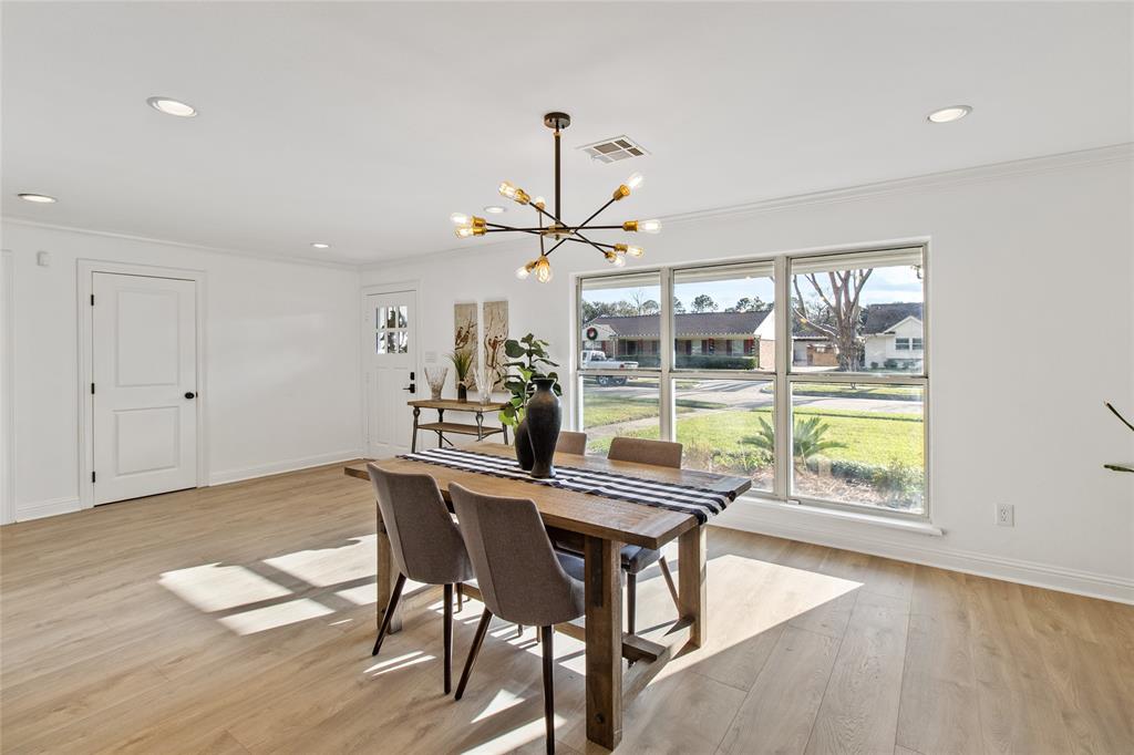 NO FLOOD-not in floodplain! Gorgeous renovated home w/ custom design finishes on LARGE corner lot! Completely re-imagined home featuring many upgrades w/ open concept living- Huge family room open to spacious dining & kitchen- large quartz island, SS appliances, gas range, shaker cabinets, wine fridge, pendant lighting. Private office w/ barn doors, wood beam ceiling & LOTS of space. Double pane windows, recessed & custom lighting/fixtures throughout, fresh paint inside & out, new doors, hardware, baseboards. New flooring throughout- NO carpet! Primary retreat w/ attached bonus room, could be office, nursery, HUGE dressing room! Spa like primary bath- w/ matte black fixtures, gorgeous vanity w/ marble counter, dual sinks, deep soaker tub, stand alone shower with marble finishes & seamless glass. Hall bath also completely remodeled w/ subway tile tub surround, dual vanity w/ marble counter & lots of cabinetry. Walking distance to Westbury Park & the highly rated Parker Elementary.