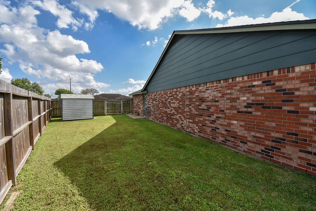 Welcome to this adorable home in the highly desirable Shore Acres community of La Porte. A covered front porch spans the length of the home, offering a peaceful place to unwind. Inside, the inviting living room showcases a vaulted ceiling, cozy fireplace, and built-in features, opening to the dining area and kitchen for easy flow. The kitchen is equipped with stainless steel appliances, a large island, and breakfast bar. A generous laundry room and walk-in pantry provide excellent storage. The primary suite features double sinks and a walk-in closet, while the additional bedrooms are thoughtfully designed. A converted garage adds a spacious fifth bedroom with a large closet. Enjoy outdoor living with a covered patio and outdoor kitchen complete with a brick oven. Comfortable living with room to gather, relax, and entertain!