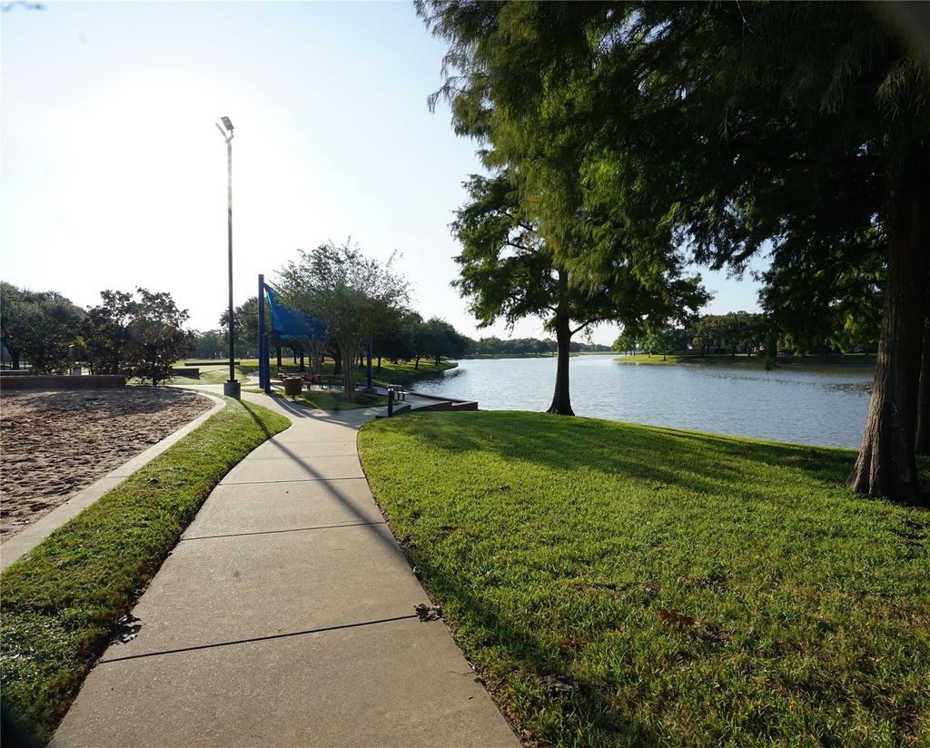Beautiful Newmark Home nestled in a peaceful cul-de-sac in the heart of First Colony. This 4-bedroom, 2.5-bath home features the primary suite on the first floor and a detached 2-car garage. Original corze countertops and shutters facing the street elevate its classic curb appeal. Two AC units were replaced in 2018 and 2019. Recent updates include: new vinyl flooring in dining, office, master bedroom and living areas (July 2025), new roof and gutters (April 2024), and fresh interior/exterior paint (April 2024). Enjoy a spacious backyard with sprinkler system and 120 sqft storage shed. Refrigerator, washer, and dryer are included. Ethernet wiring throughout makes remote work easy. Zoned to top-rated Fort Bend ISD schools and walking distance to First Colony Aquatic Center with an Olympic-size pool. A timeless Newmark design with bright, functional spaces—just minutes from shopping, dining, parks, and commuter routes. Move-in ready with thoughtful updates throughout.