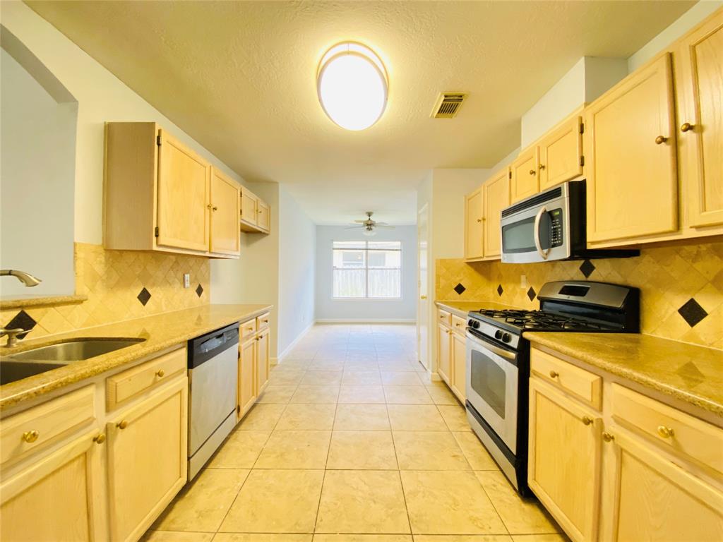 Tile floor throughout. Upgraded kitchen with granite counter top and SS appliances. Very open design with breakfast area, dining and living. Ceiling fans in all bedrooms. Covered patio. Ready to move in.