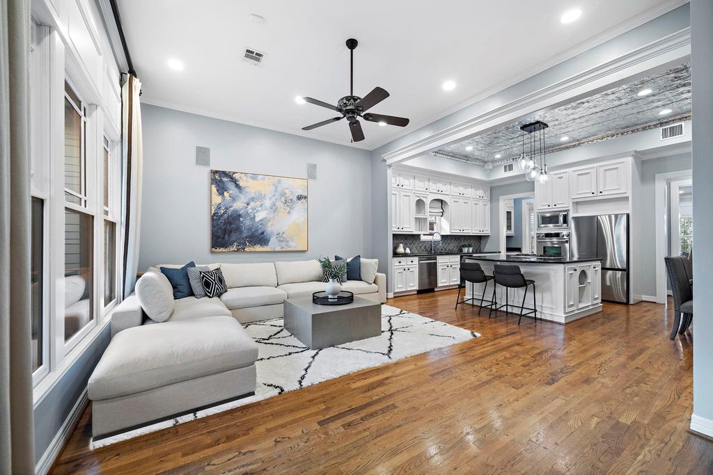 Discover the allure of Houston Heights in this stylish 2-story brick home. Near the Heights Hike & Bike Trail, dining, parks, and shops it offers an ideal fusion of location and elegance. Step inside to find high ceilings, wood flooring & a spacious living and dining area with a captivating fireplace, creating a relaxing atmosphere for gatherings. The open kitchen with pressed metal ceilings is perfect for daily living and entertaining, along with an inviting den. The primary suite features a walk-in closet, ensuite bath with tub & shower, while the home office & flex space offer versatility. With the added convenience of an elevator, navigating between floors is effortless. This home includes a 1-bedroom garage apartment with a kitchenette, great for guests or rental income. Embrace the timeless charm of this remarkable architecture, with easy commutes & Harvard Elementary just moments away!