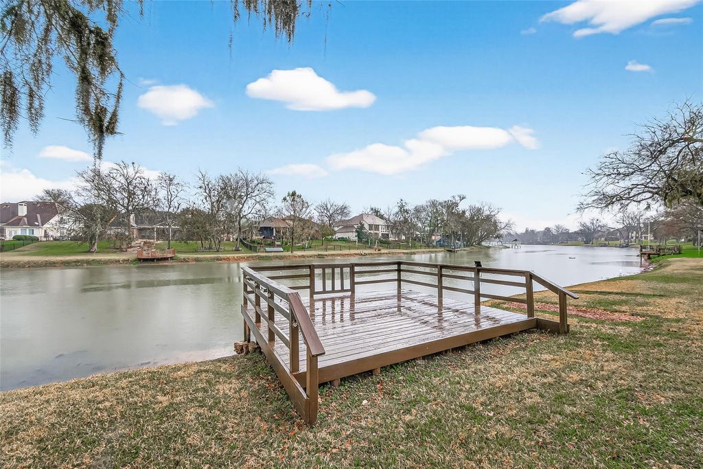 Step into luxury with this stunning 4/3.5/3 home featuring a study with picture trim, vaulted ceilings, and hardwood floors. The formal living room boasts crown molding, hardwoods, a wet bar, and a fireplace, while the formal dining room offers chair railing. The tiled family room includes recessed lights and built-in bookshelves/entertainment center with full ceiling speakers. The granite island kitchen features a built-in desk and serving bar. The primary bedroom is spacious with hardwood floors, a bay window, and French doors to the backyard. The master bath includes double sinks/vanity, a whirlpool tub, and a separate two-shower system. Three secondary bedrooms and a full house generator complete this designer home with a huge treed backyard and dock on the lake. Wheelchair accessible with double doors throughout. Garage has workshop and half bath, Weekend price reduced 20k, will return to list price on Mobday if no accepted contract by then