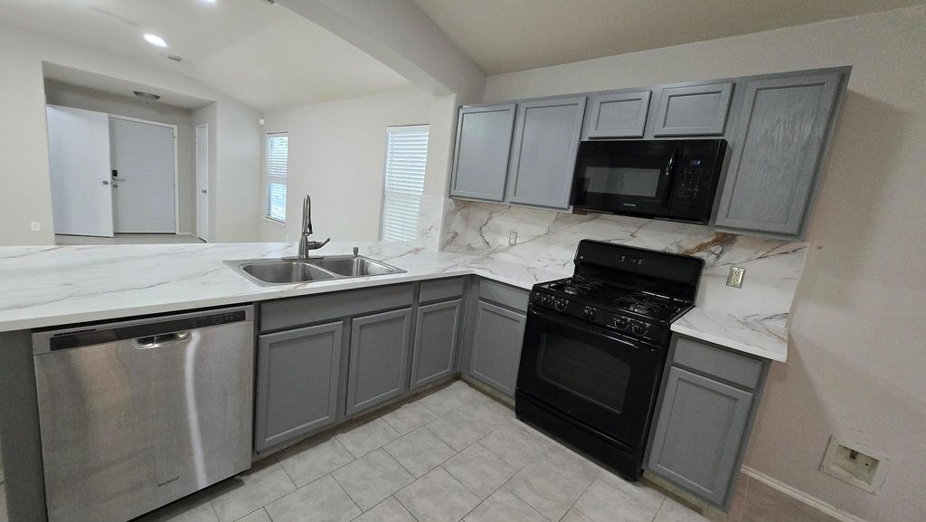 Section 8 welcome!! Beautiful house with open floor plan and high ceiling. Included Solar Panel, save a lot on energy bill!! Brand new wood tiles floor through out whole house. Wide front entry. Bright house with wide windows. Double and separate fully functional kitchens. Ready for moving in. Close to shopping centers, 99 and Nice house in quiet neighborhood. Good size backyard. Katy ISD Schools. Good location