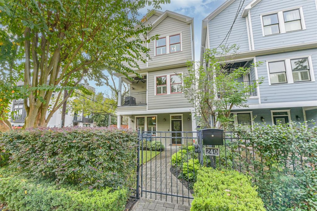 240 E Woodland St is listed for sale at $ 608,000. The Single-Family property has 3 bedrooms, 3 Full Bathrooms, 1 Half Bathroom, 2284 square feet and was built in 2008. The lot size is 2909 Square feet. ##BR##Beautifully maintained 3- bedroom, 3 full 1 half bath home in a prime location! This spacious residence features second floor living, abundance natural light, and a thoughtfully designed open layout perfect for entertaining. The kitchen features stainless steel appliances, a walk-in pantry, and a dumbwaiter connecting to the first floor for added convenience. It flows seamlessly into the living and dining areas, complemented by two private balconies ideal for relaxing, grilling or hosting guests. The third floor primary suite offers a private balcony, walk-in shower, soaking tub, and a generously sized walk-in closet. Enjoy a charming front patio/green space. A two- car garage provides ample parking and storage. This property offers easy access to nearby dining, shopping, and major highways- making commute a breeze while still enjoying walkable life! Zoned to highly sought-after Travis Elementary, Hogg Middle School, and Heights High School.