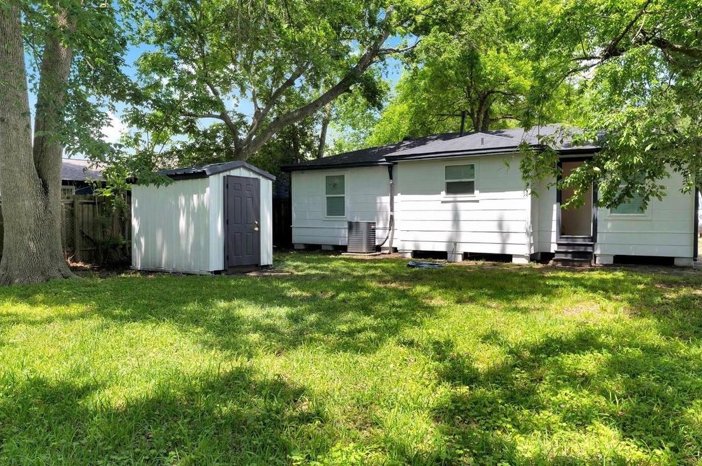 This beautifully reimagined 3B/2Ba home is located in Houston’s Medical Center South & blends modern design with functional living. The open-concept layout features luxury flooring, recessed lighting, & a bright, airy feel throughout. The kitchen is the centerpiece of the home, showcasing a waterfall-style island, custom cabinetry, stainless steel appliances, & designer vent hood. The primary suite comes complete with a spa-inspired bathroom featuring sleek tile work, modern fixtures, & a walk-in shower. Secondary bedrooms are well-appointed with ample space & natural light. Both bathrooms have been updated with contemporary finishes, including floating-style vanities, LED mirrors, & elegant tile selections. The backyard provides plenty of space for outdoor enjoyment, gardening, or future additions. A storage shed adds extra convenience. With easy access to the Medical Center, universities, dining, & entertainment, this home is a rare find offering style, location, & value.