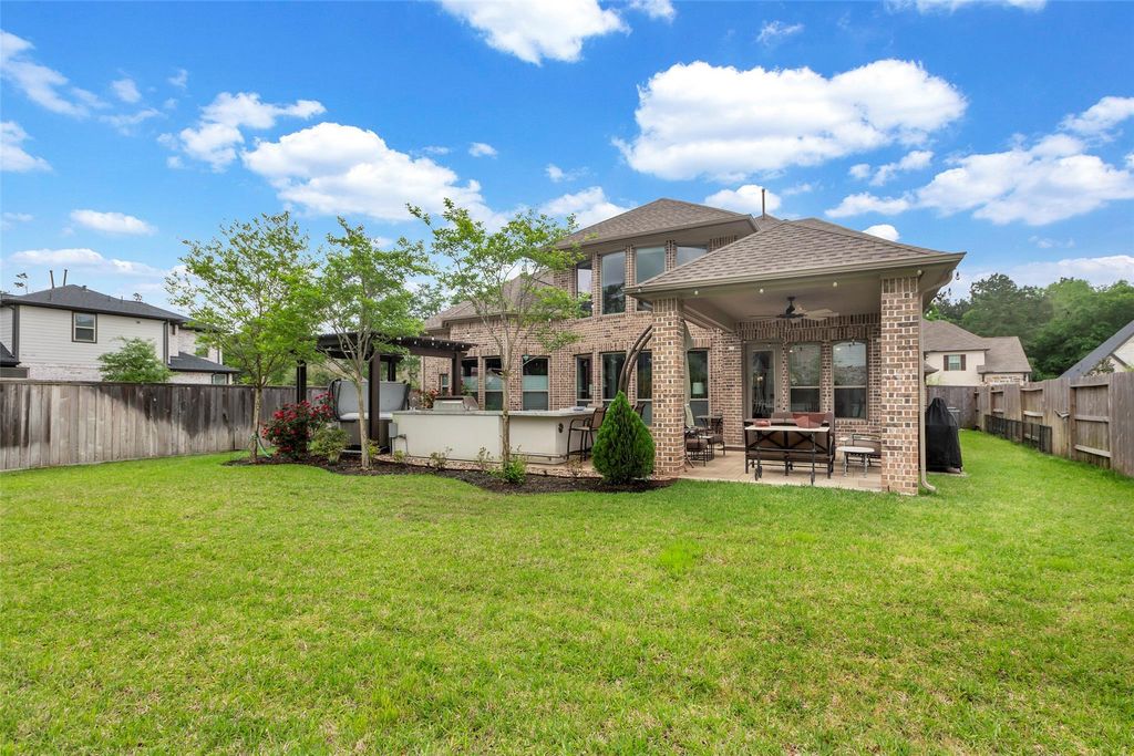 The best value just got better- get special data from listing agent. Beautifully crafted 2020 Westin home with 5 beds and 4.5 baths. Primary, and 1 bedroom w/full bath are conveniently located on the 1st floor along with a private office. The open-concept living area features a large kitchen island, coffee bar, beverage bar, dining room & breakfast area, and a spacious living room—perfect for entertaining. Enjoy a media room upstairs, plus an upstairs bonus room also. Soaring ceilings, tiered rotunda, and expansive windows fill the home with natural light, creating a warm and welcoming atmosphere throughout. Large backyard w/covered patio, outdoor kitchen w/gas grill, luxury spa, 5ft garage extension & beautiful curb appeal on a corner lot designed for entertaining. Shops and Restaurants are close by, along with all of the world-class amenities in Woodforest: pools, trails, golf, & events. Welcome home to Woodforest!