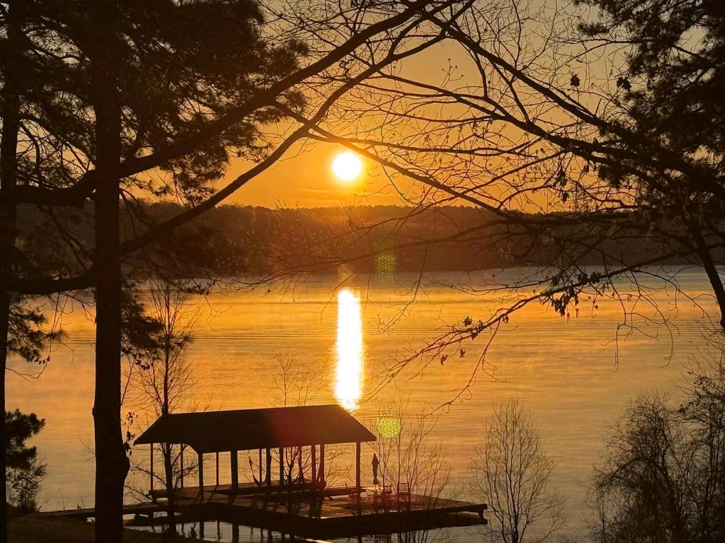 Nestled among the pineywoods on Lake Nacogdoches, this charming plantation-style home offers 5 bedrooms & 3.5 baths with beautiful waterfront views. The spacious primary suite features a luxurious bath with double vanities, whirlpool tub, separate shower, & private balcony overlooking the lake. A downstairs mini-suite with private entry & walk-in bath is perfect for guests or multigenerational living. Enjoy timeless details throughout, including crown molding, a formal dining room with chandelier, and an inviting living area with a gas log fireplace and built-ins. The kitchen offers gas appliances, a large eating bar, and built-in cabinetry, while a private study and spacious laundry room add functionality. Step outside to a large deck right on the water—perfect for entertaining, fishing, or relaxing. The covered boathouse includes an electric lift with new motor plus an additional uncovered slip. Wake up to stunning sunrises over Lake Nacogdoches—this waterfront retreat is a must see!