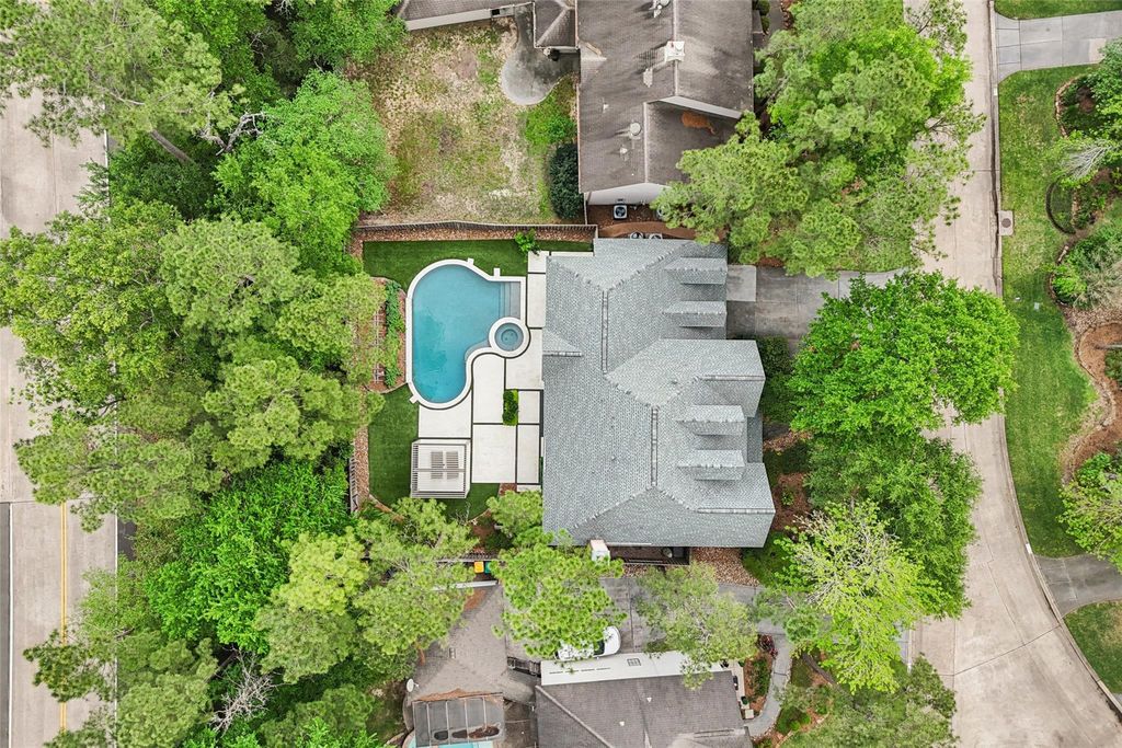 Welcome to this beautifully updated, well-appointed 4-bedroom, 3.5-bath home in the heart of The Woodlands — zoned to top-rated schools. Brimming with character and thoughtful finishes, all bedrooms are upstairs, including a spacious guest suite with an ensuite bath. The chef’s kitchen is a showpiece with quartz countertops and a highly coveted Lacanche range, blending timeless elegance with modern performance. Recent major updates include a brand-new roof, tankless hot water heater (2024), and HVAC replaced in 2020. The backyard is a private oasis — an updated, low-maintenance retreat with an oasis-style pool and lush artificial turf, a louvred pergola with retractable patio shade, perfect for entertaining or quiet relaxation. With an HOA-maintained front yard and quality upgrades throughout, this home effortlessly combines luxury, charm, and easy living.
