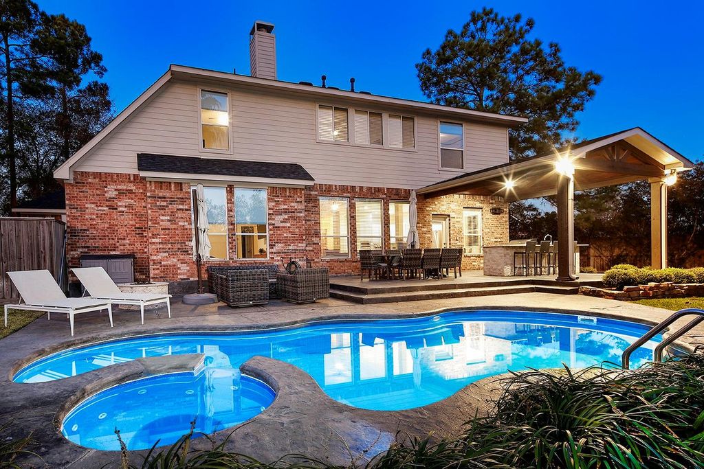 Beautifully renovated and ideally positioned on an oversized cul-de-sac lot backing to the greenbelt in desirable Sterling Ridge, this exceptional home offers privacy & refined living. Featuring 4 generous bedrooms, 4.5 baths, study & a private, 1st floor flexroom w/full bathroom, it’s designed for both comfort & functionality. The open-concept layout features soaring ceilings, elegant crown molding, upgraded railings & thoughtfully selected lighting & designer finishes, creating a space that’s perfect for gatherings. The gourmet kitchen impresses with quartz countertops, refreshed cabinetry & effortless flow into the family and dining spaces. Your private backyard oasis with greenbelt access features a covered patio, outdoor kitchen, sparkling pool and spa & is ideal for entertaining or relaxing. Zoned to highly acclaimed Coulson Tough Elementary, McCullough JH, TWHS. Recent updates include roof, upstairs AC unit, fencing, landscaping, sprinklers, pool heater & pool equipment.
