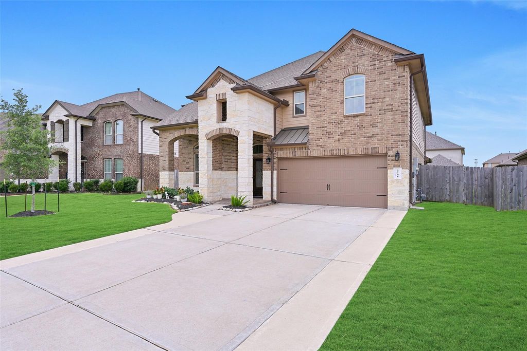 Welcome to this tastefully updated 4-bedroom, 3.5-bath home nestled in the desirable Bakers Landing community, zoned to top rated Pearland ISD! Inside, you'll find fresh paint throughout, a formal dining room, and an open-concept living area with durable tile flooring-perfect for entertaining or daily living. The chef-inspired kitchen offers rich, espresso cabinets, granite counters, a generous center island, and stainless steel appliances.Upstairs, enjoy oversized secondary bedrooms, a versatile game room, and a dedicated media room ideal for movie nights or a home office. Enjoy outdoor living on the extended front porch and covered back patio, ideal for relaxing with family and friends.Additional highlights include an extended driveway, tankless water heater, radiant barrier and a whole-home generator (installed in July, 2024) with automatic transfer switch and transferable warranty. Ideally located just steps from a stocked pond, scenic walking trails, and a neighborhood playground.