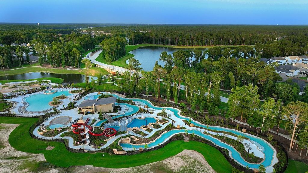 Tucked away on a premium cul-de-sac lot, this rare 1-story home offers desirable privacy & location. With no neighbors on one side & backing to scenic walking paths, the setting is peaceful & just a short walk to neighborhood amenities. Inside features an exceptional layout w/4 bedrooms, 3 full baths & study. The primary suite is separate from the secondary bedrooms for added privacy. High ceilings & lots of natural light enhance the open feel, while wood-look tile flows through the main living areas. The large open kitchen connects seamlessly to the living & dining spaces, ideal for everyday living & entertaining. 2 car garage & water softener system. Resort-style amenities include The Highland Pines Tour 18 golf course, Discovery Cove Water Park w/2 pools, splash pad, slides, lazy river & sun decks; scenic lakes for kayaking & fishing, a 200-acre nature preserve, 30 miles of walking/jogging trails, Pickleball & tennis courts, future fitness center, clubhouse w/dining, parks & more!
