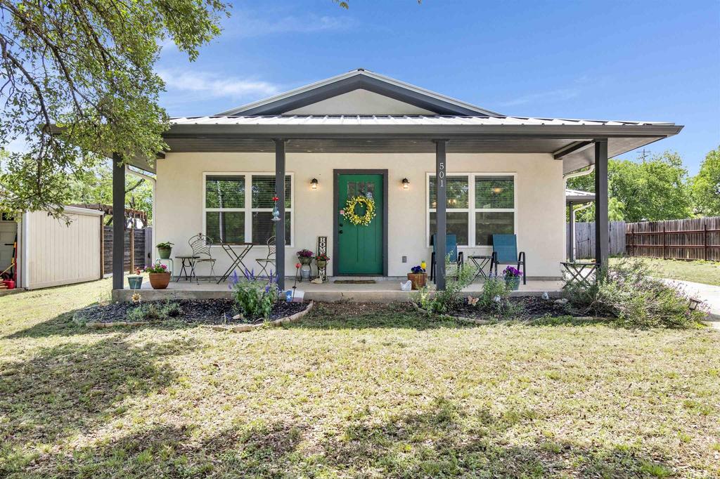 Located right in Johnson City, this 3 bedroom, 2 bathroom home built in 2022 offers 1,680 square feet and sits in one of the most convenient spots in town. You are just seconds from schools, Shockley Stadium and the Johnson City Community Park, and only a quick minute into downtown for restaurants, shops, and local events. It''s a great option for anyone wanting to stay close to the heart of town without giving up newer construction, while still having quick and easy access to Hwy 281 and 290. The inside of the home has an incredibly functional floorplan with concrete flooring throughout and granite countertops that hold up well over time. The bedrooms are all a great size and storage is one of the strong points here, with plenty of closets and room to keep things organized. Out front, the beautiful tree gives plenty of shade and adds a lot of character to the property. The backyard has a really pretty setting and feels private enough to enjoy without a lot of upkeep. An attached carport, storage shed and a metal roof make this home even more desirable. This is the kind of property that works well for a full time residence, a weekend place, or even an investment.