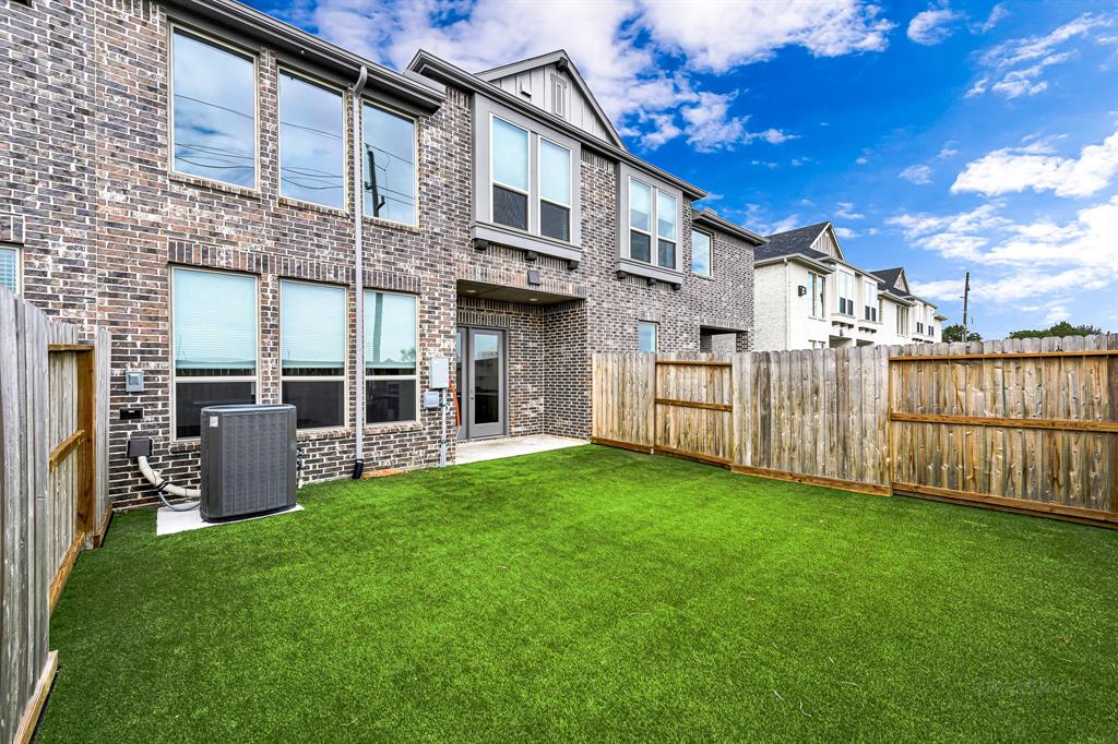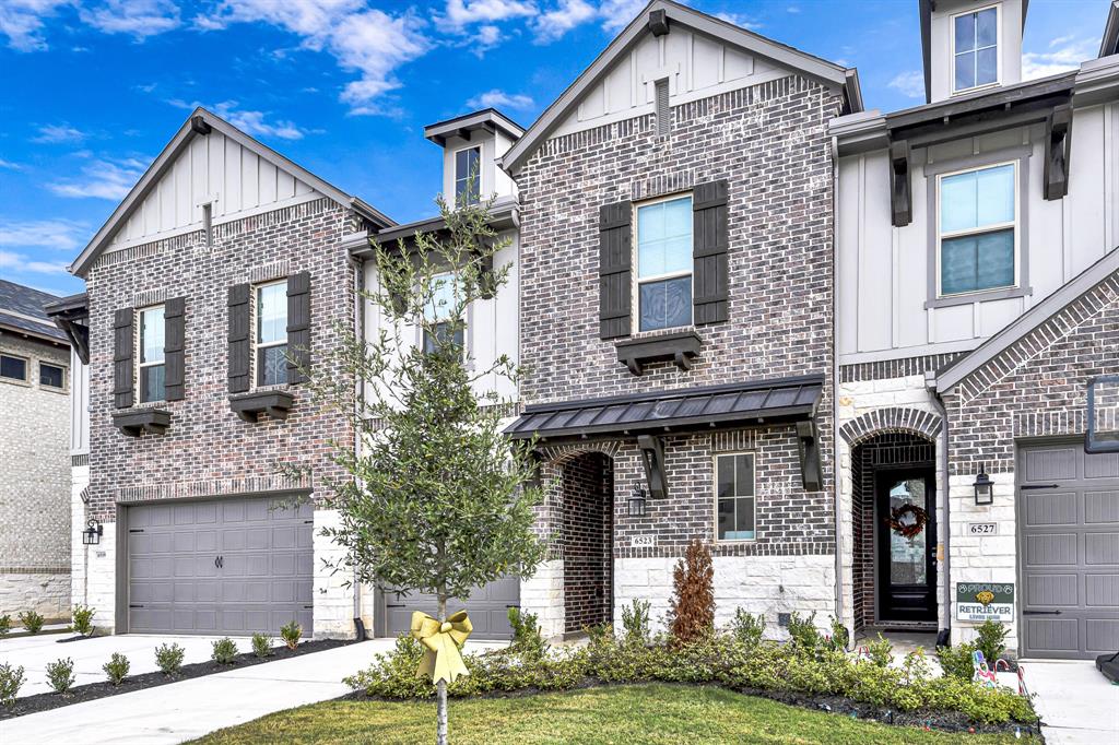 Gorgeous Highland Townhome zoned to Jordan High School in Katy ISD! This contemporary townhome has it all! Formal entry w/soaring ceilings! 1/2 bath tucked away in the front of home across from the laundry room w/custom tile & washer & dryer included. Gorgeous vinyl plan flooring leads to an open concept living, dining, and kitchen area. Kitchen boasts beautiful white & black cabinets w/brushed gold pulls, stainless appliances w/wall mounted oven & microwave, & gas cooktop w/stainless vent hood, stainless refrigerator, pendant lighting, and an abundance of natural light. Living room has 2 story ceilings with wall of windows. Formal dining area is defined and will accommodate a large table. Primary bed up w/ensuite bath, quartz counters, double sinks, modern free standing tub, oversized shower, & walk-in closet. Game room up separates 2 secondary bedrooms. Secondary bath w/double sinks & quartz counters. Front yard maintenance included. Turf in back. ZERO maintenance! Walk to amenities!