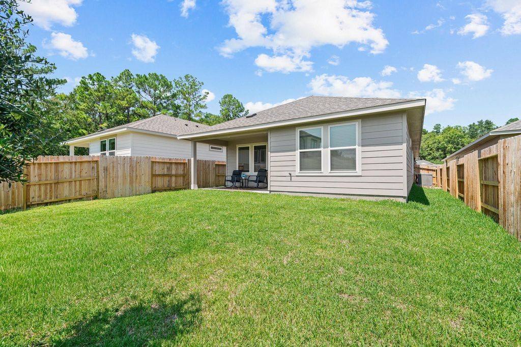 The Cascade features a private primary suite with dual sinks and a spacious walk-in closet. Stylish finishes include espresso cabinets, granite countertops, white backsplash, EVP flooring, and multi-tone carpet. Located in Pine Lake Cove in Conroe near SH-105, just minutes from Lake Conroe and zoned to Montgomery ISD. This home is move-in ready and fully furnished—enjoy lower utility costs and modern comfort with built-in energy-saving features.