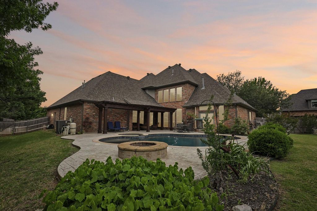 Thoughtfully designed for both everyday living and entertaining, the open concept floorplan features two spacious living and dining spaces, and a private office with built in shelving and coffered ceiling. Main living areas connect effortlessly, creating a warm and inviting space for gathering with family and friends. All bedrooms are generously sized with excellent closet space, while the upstairs game room provides flexible options for a media room, playroom, or additional living area. The primary suite serves as a relaxing retreat with a spa like bath, complete with a jetted tub, separate shower, and large walk in closet. Hardwood floors, abundant storage including a bonus storage room, and quality finishes throughout enhance both livability and design. Step outside to a backyard designed for enjoyment, featuring a sparkling pool and spa, fire pit, garden area, and ample green space for recreation or entertaining. Conveniently located near the Keller Recreation Center, Bear Creek Park, local shops, dining, and entertainment, this home delivers exceptional living in a prime Keller location.