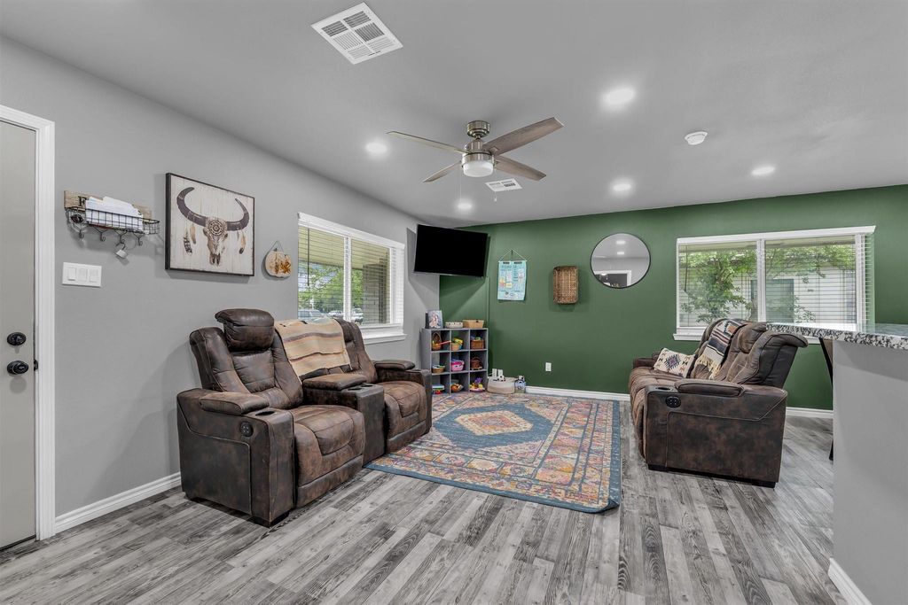 Welcome to 408 Little Ave in McGregor, a beautiful 3-bedroom, 2-bath home that blends comfort and style. Featuring vinyl plank flooring throughout this open floor plan offers a clean, modern feel with thoughtful updates completed in recent years. The kitchen is both functional and inviting, featuring granite countertops, a double sink, stainless steel appliances, and a pantry for added storage. The adjacent dining area makes it easy to gather, whether for casual meals or hosting friends and family. The secluded primary suite provides a peaceful space with a walk-in closet and double vanity. Enjoy relaxing mornings on the inviting front porch or unwind in the evenings on the back porch overlooking a spacious backyard designed for entertaining, play, and making memories. A large shed offers excellent additional storage, making this home as functional as it is practical. Come see it for yourself and imagine life here! Schedule your showing today!