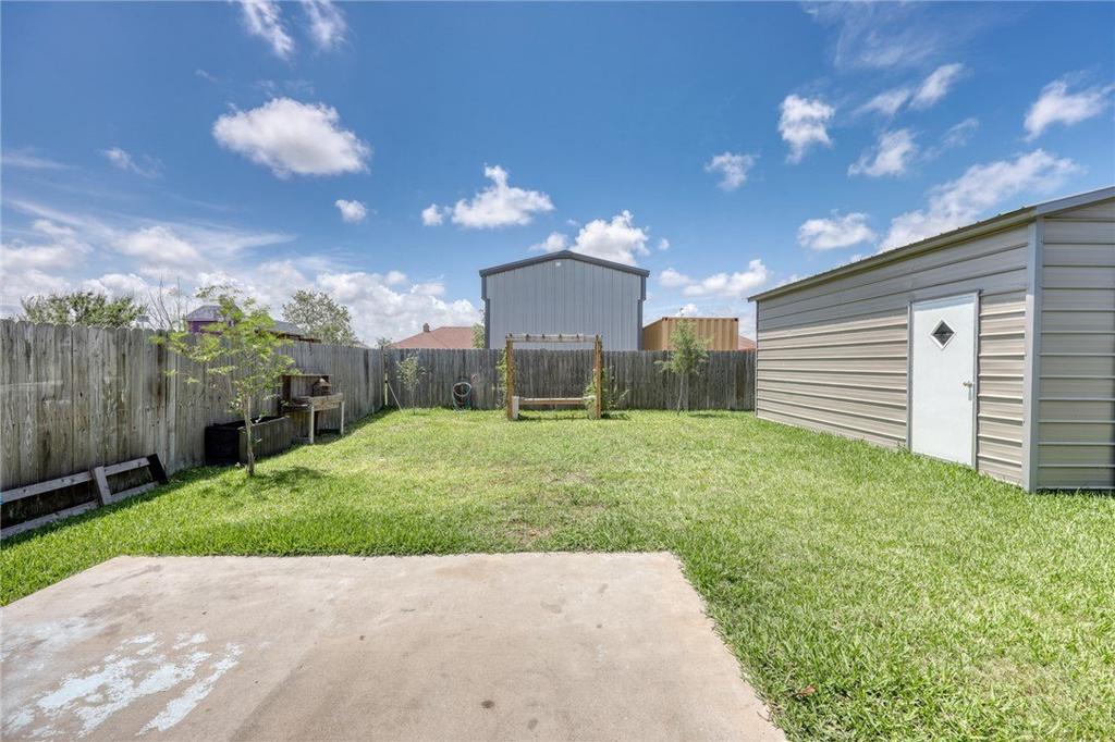 Location Location Location...Flour Bluff ISD and 10-15 minutes to the beach and downtown with plenty of options for eateries, shopping, entertainment, and medical. Just under 1650 Sqft, this home offers stainless steel appliances (including the refrigerator), granite countertops, breakfast-bar, island, pantry, electric fireplace, separate laundry room, AC/Heated garage, screen for garage, extra parking for RV/Boat, 14x20 large storage shed/workshop, solar panels, solar screens front of house, new flooring, security system, covered patio, large yard, room for a pool, and a generator. This home is all set with energy saving equipment and is ready for it''s new Buyer.
