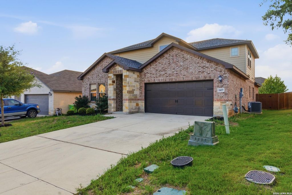 Welcome home to this modern and inviting 4-bedroom, 2.5-bath residence in West San Antonio, conveniently located near SeaWorld and top-rated schools. Step inside to a bright, open-concept layout featuring stylish wood-look flooring that enhances the home's warm and welcoming feel. The centerpiece of the home is a beautifully designed kitchen, complete with a large island, bar seating, and sleek stainless steel appliances-perfect for entertaining or everyday living. The spacious primary suite, located on the main floor, offers a private retreat with high ceilings, abundant natural light, and a luxurious en suite bathroom featuring dual vanities, a soaking tub, and a separate shower. Upstairs, you'll find three additional bedrooms along with a versatile loft space-ideal for a home office, game room, or second living area-providing both comfort and privacy for family or guests. This home combines modern style, functional space, and a prime location-ready for you to move in and enjoy.