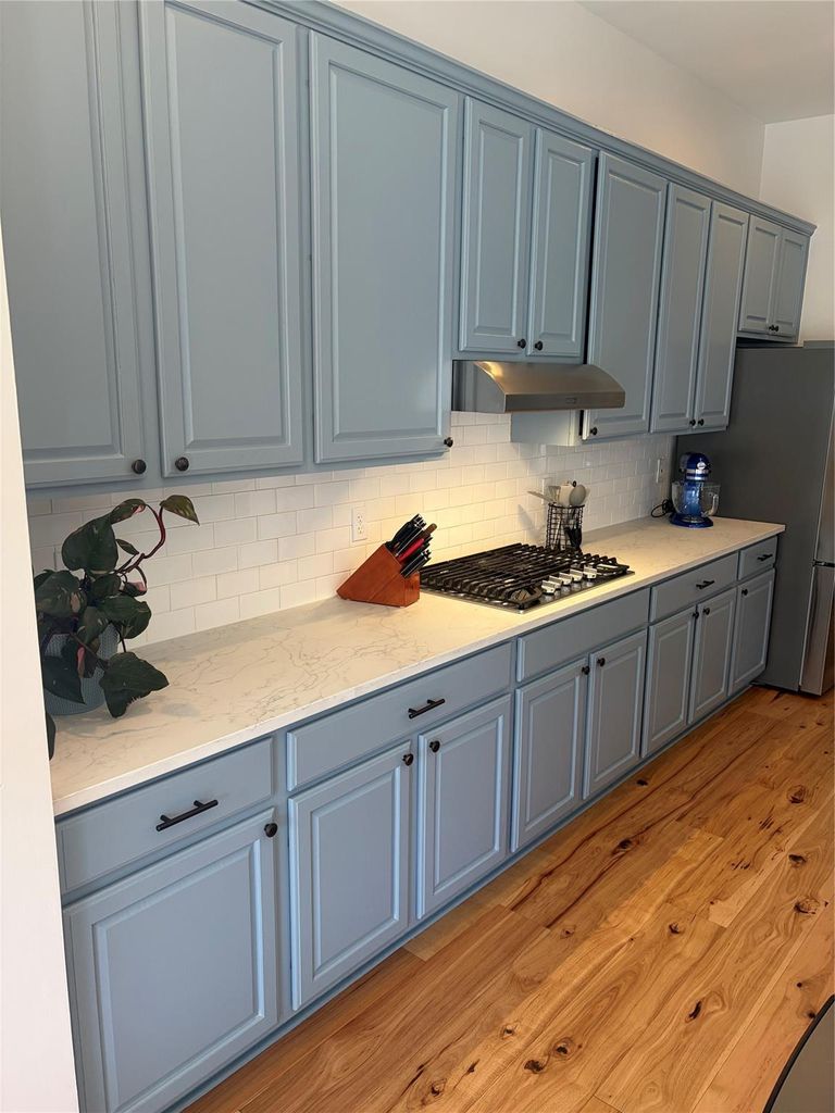 at the heart of the home, the chef's f kitchen impresses with custom cabinetry, a gas cooktop, a large island that opens to the living room, ideal for both everyday living and entertaining.