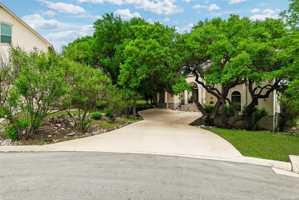 Tucked back on a premier street, surrounded by mature trees, this 3,813 sq ft stucco home sits on .41 beautiful acres in a gated community. Ideally located on a cul de sac with a peaceful greenbelt backdrop, this majestic home with flexible floorplan features lots of dramatic tall windows that flood the home with natural light. 5 bedrooms/3 baths, with both a downstairs primary suite and a secondary bedroom. Hard to find! No carpet downstairs. Upstairs includes three additional bedrooms plus a game room. One of the bedrooms can easily serve as a media room or office. Enjoy the outdoors from your newly refinished deck or unwind on the patio beside the stone chiminea. With a large backyard, side yard, and plenty of room to spread out, this property offers a rare sense of space and privacy. Recent updates include a newer roof and HVAC system. Located in a desirable neighborhood with excellent schools, two swimming pools, basketball court, and club house this home truly has it all.