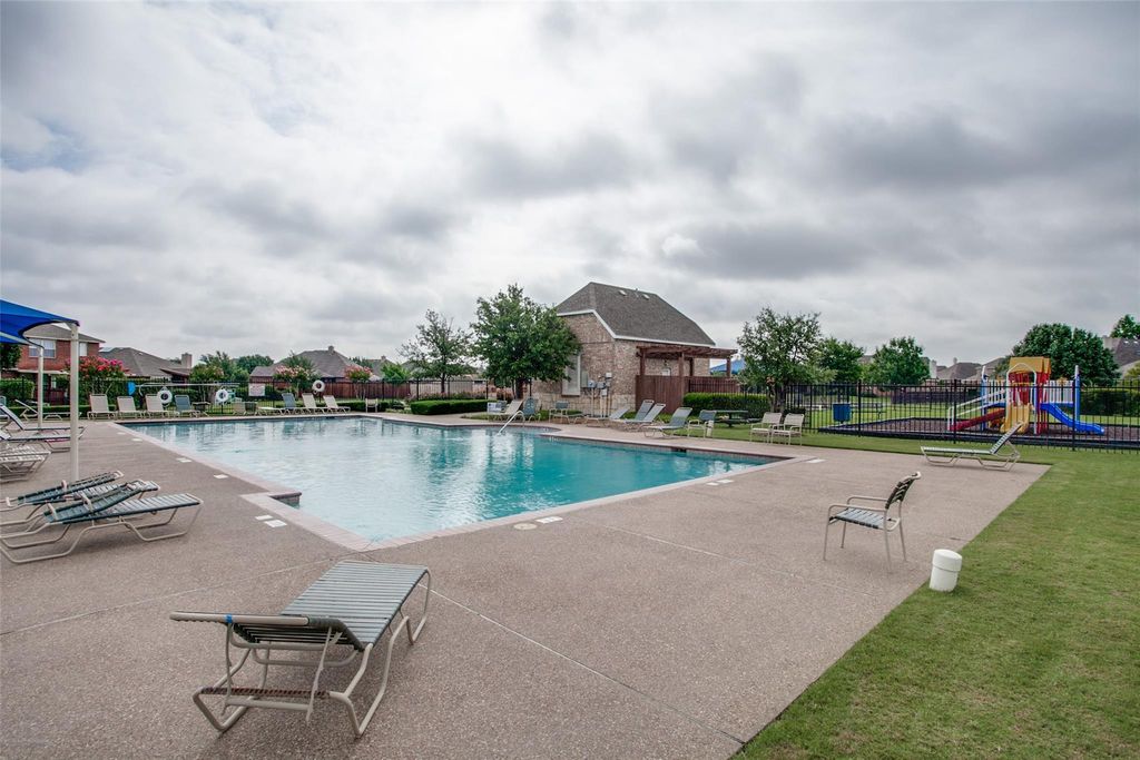 Located in Waterford Falls in Frisco, this single-story home offers beautiful curb appeal and mature trees. Inside features arched walkways, art niches, and crown moulding throughout the main living areas. The living room includes built-ins, a dry bar, and a wood-burning fireplace. An executive study with French doors is the perfect home office or playroom. The chef’s kitchen is equipped with granite countertops, a gas cooktop, stainless steel appliances, and a walk-in pantry, and sits between a light and bright breakfast room and the formal dining room, which makes entertaining a breeze. The primary retreat with spa-like ensuite featuring separate vanities, makeup vanity, freestanding soaking tub, seamless shower, and walk-in closet. Two generously sized secondary bedrooms with a shared bath complete the interior. The backyard offers a large patio, board-on-board fence, and an automatic rolling gate across the driveway for added privacy. Zoned to the award-winning Frisco ISD. Walking distance to neighborhood amenities, including a park with a playground, splash pad, basketball court, and community pool. Close to shopping, dining, entertaining, and 423 and NDT for a quick commute!