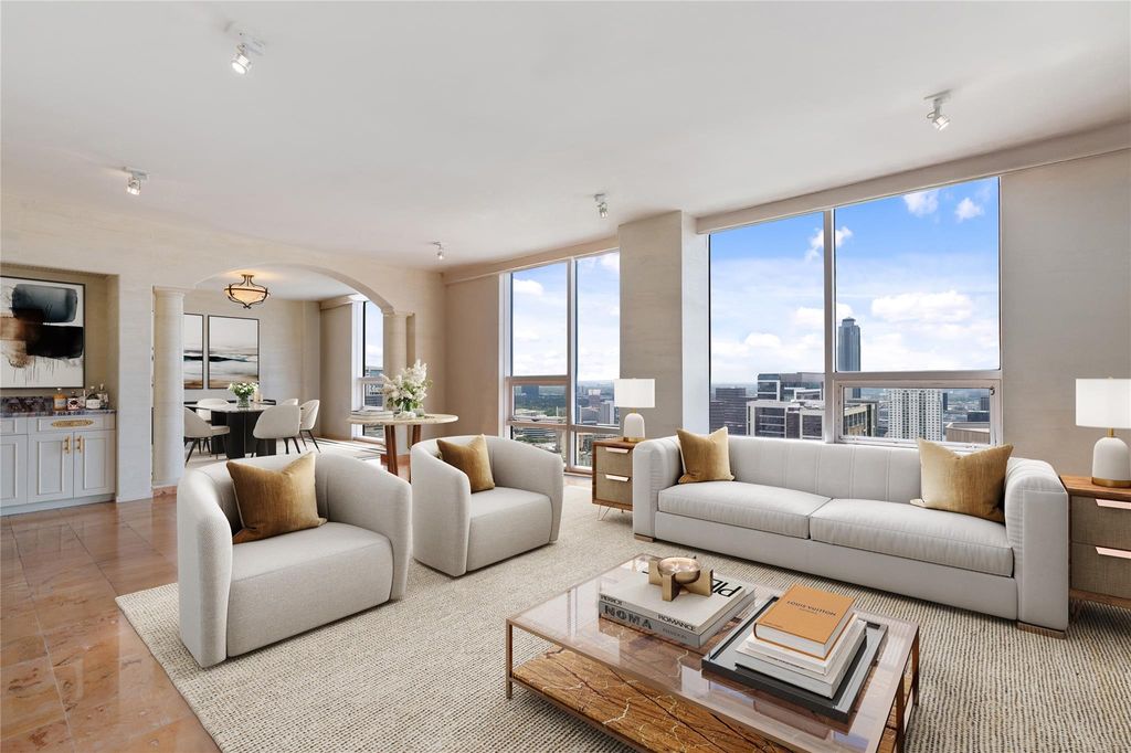 36th floor opportunity awaits w/ South & West views enjoying stunning sunsets over the Galleria & Tanglewood areas! Originally a 3 bed/3.5 bath floor plan, an additional +/- 790 sq.ft. was incorporated into the residence. Bespoke custom finishes throughout including mahogany & marble floors, Venetian plaster walls and custom millwork. Both formals, sunroom & den/study, wet bar w/icemaker & wine cooler. Expansive primary suite offers full bath w/walk-in shower, separate tub, private water closet and vanity, second half bath area w/ vanity & water closet plus three huge walk-in closets. Secondary ensuite bedroom & 3rd bedroom potential. Kitchen features Thermador 5-burner induction cooktop and oven, Bosch dishwasher & Subzero refrigerator. Full sized washer/dryer closet. Full service living w/ 24 hour concierge, valet, porter, fitness center, dry sauna, spa & party room. Nine acres of manicured gated grounds w/ heated swimming pool, dog park, play area, grills & covered cabanas.