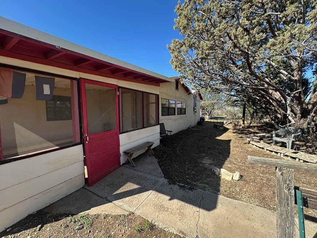 1963 sf Stucco Home sits on 2 Lots, Completely Fenced, with lots of trees and vegetation, and a Metal Roof. Separate 798 sf detached garage with area that could be used as a small apartment with a covered patio and lots of room for storage. This home features a screened in front porch, many rooms with windows offering tons of natural light, with many possibilities. Investors Dream House!!!