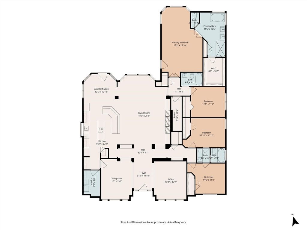 Hollywood Bath, Primary Bath: Double Sinks, Primary Bath: Jetted Tub, Primary Bath: Separate Shower, Secondary Bath(s): Double Sinks, Secondary Bath(s): Tub/Shower Combo
