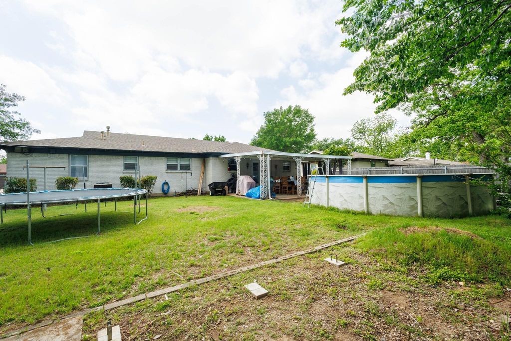 UPGRADES INCLUDE: New LVP flooring carpets in bedrooms, New French Door to back patio, New Granite countertops in kitchen and hardware on cabinets. Upgraded farmhouse sink, new disposal, new dishwasher, new exterior paint and a large above ground pool with sand filter