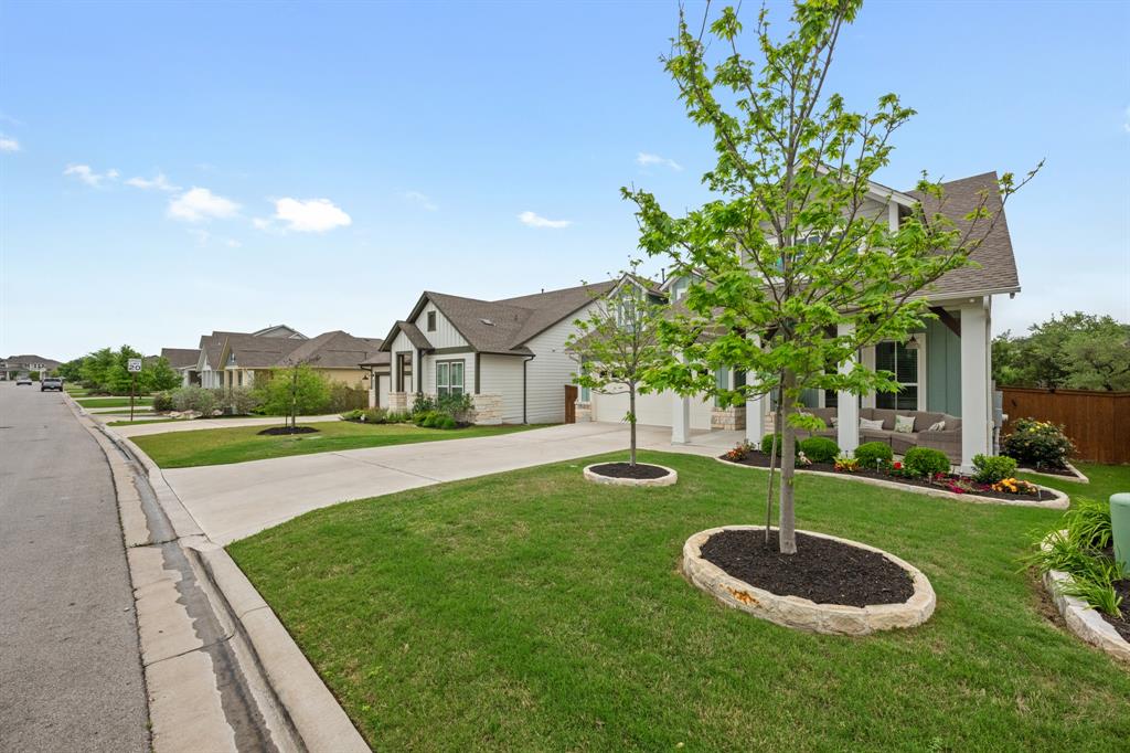 Quintessential craftsman home in the desirable Headwaters community of Dripping Springs! Open-concept layout features an inviting central kitchen anchored by a formal dining room while overlooking the main living space - ideal for entertaining! Private primary suite serves as a true retreat with coveted bay windows and generously sized walk in closet space. Designed with separation in mind, the upper level creates a quiet, versatile environment showcasing game room and flex space. Situated on a premium greenbelt lot, this home offers rare privacy with no rear neighbors and peaceful wooded views. Enjoy outdoor living year-round on the covered upper balcony, jacuzzi spa or relaxing by the firepit!