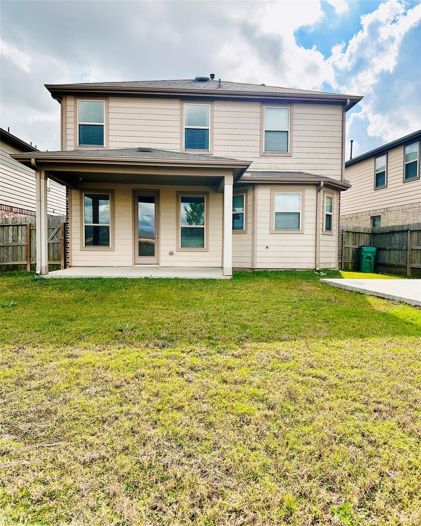 This home offers an attractive brick elevation with a functional and open interior layout, which includes tile flooring on the first level, 9-foot ceilings, and 8-foot doors. The kitchen offers granite countertops, 42-inch cabinets, stainless steel Energy Star appliances, and a practical workspace for daily use. The primary suite features dual vanities, a 42-inch Kohler soaking tub, a separate shower, and a built-in closet organizer. Additional features include no carpet downstairs, a security system, full gutters, a covered patio, and no back neighbors. The sprinkler system supports easy lawn care. Refrigerator included. Zoned to Katy ISD.